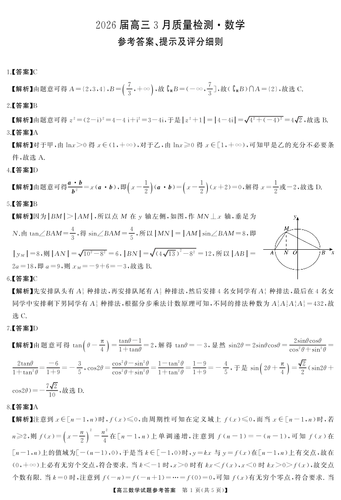 湖南省湘西州、湘潭市2026届高三3月质量检测 数学答案.pdf