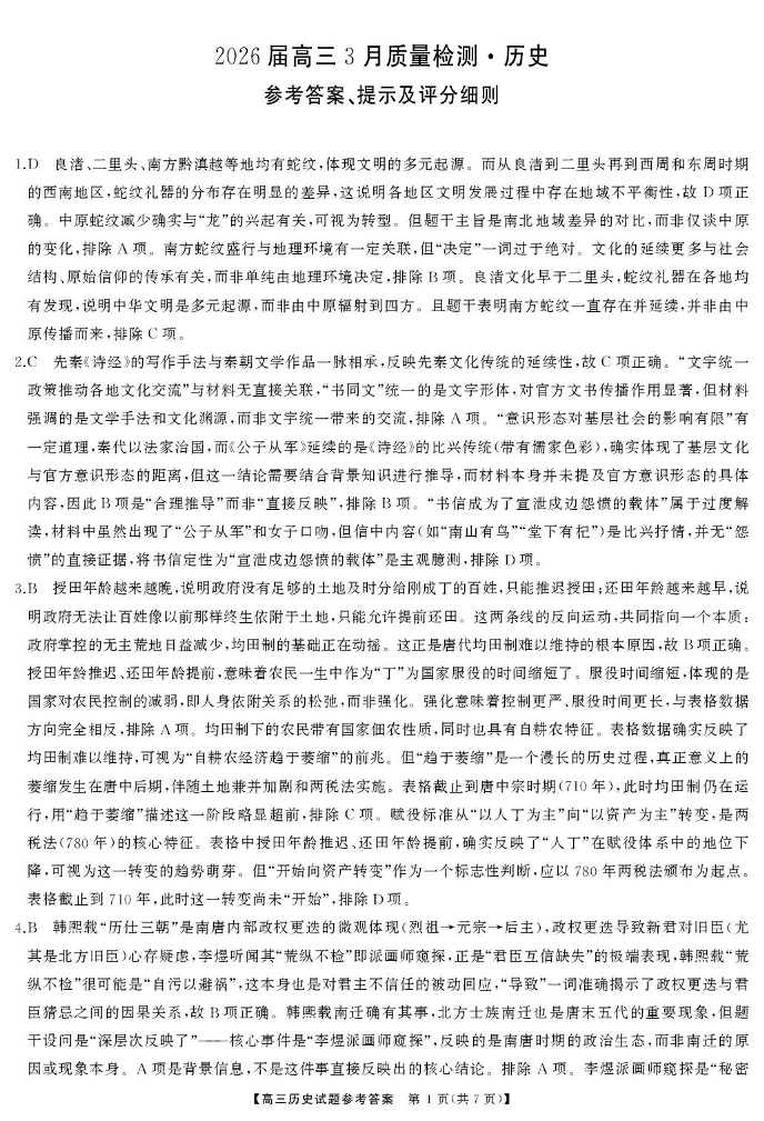 湖南省湘西州、湘潭市2026届高三3月质量检测 历史答案.pdf