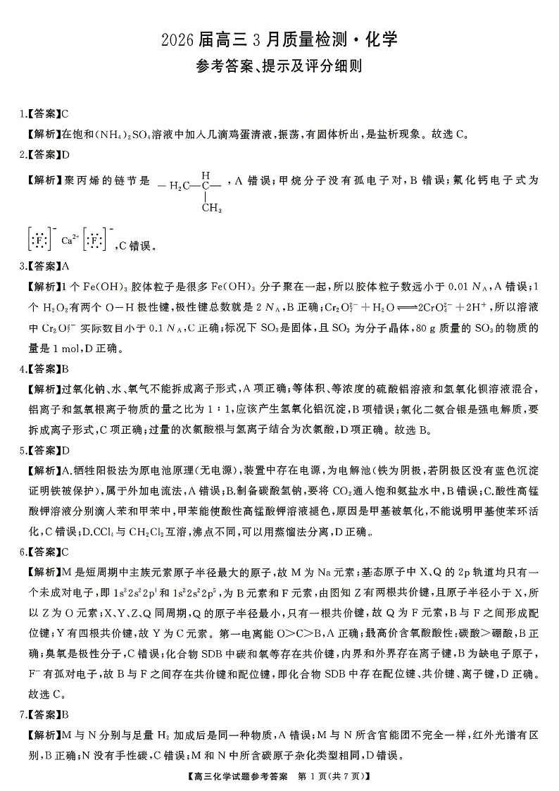 湖南省湘西州、湘潭市2026届高三3月质量检测 化学答案.pdf