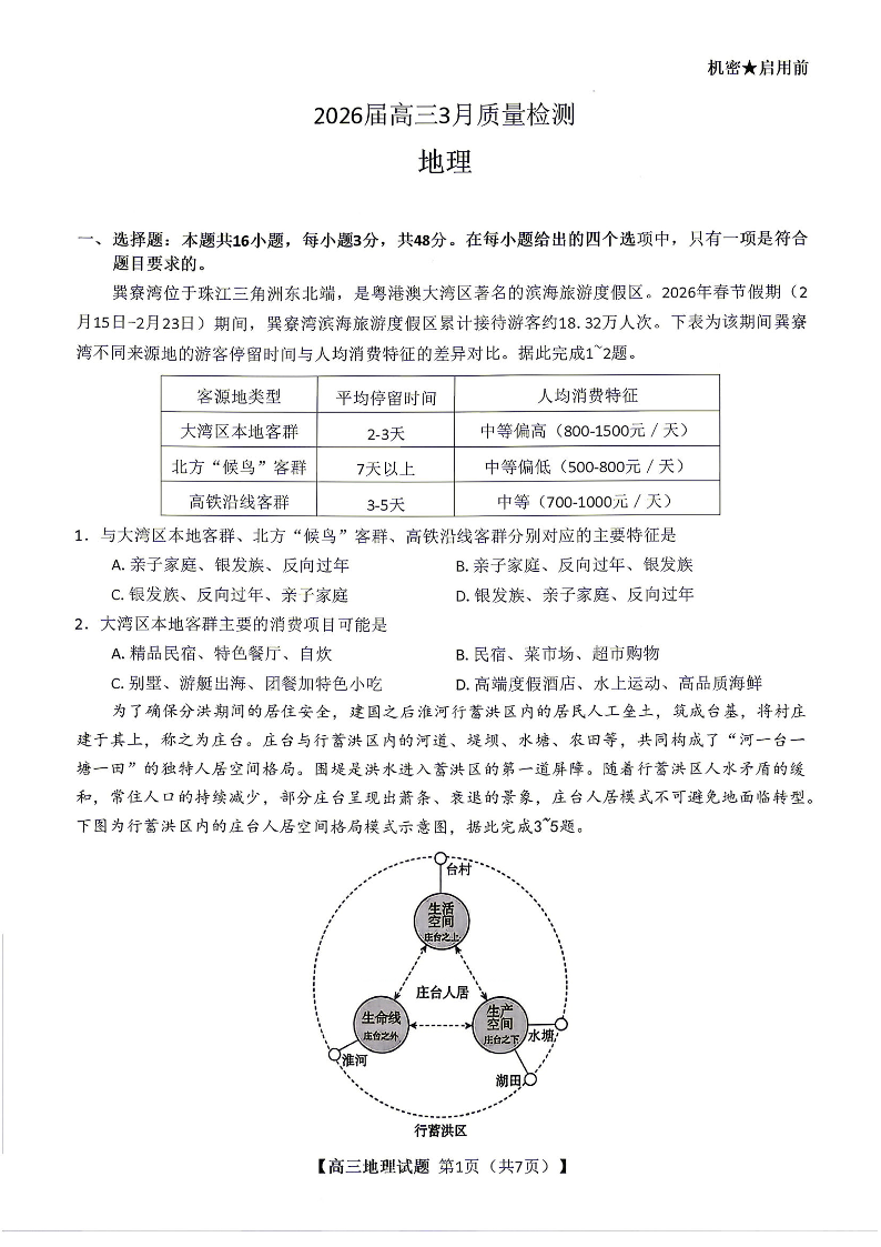 湖南省湘西州、湘潭市2026届高三3月质量检测 地理.pdf