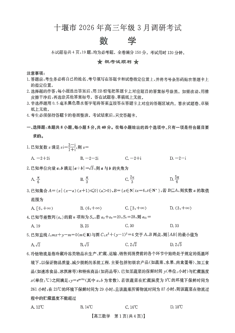 十堰市2026年高三年级3月调研考试 数学.pdf