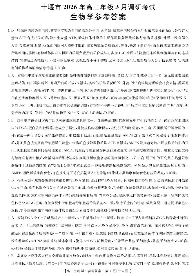十堰市2026年高三年级3月调研考试 生物答案.pdf