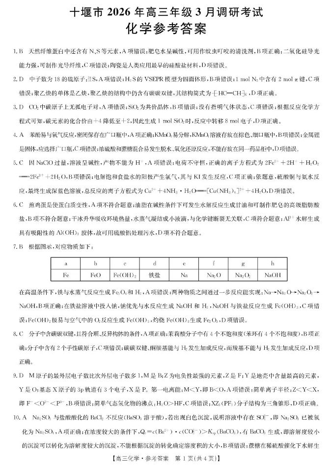 十堰市2026年高三年级3月调研考试 化学答案.pdf