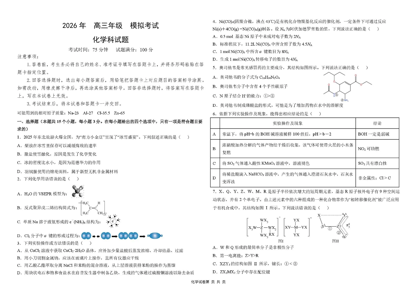 东北三省三校2026届高三下学期第二次模拟考试 化学.pdf