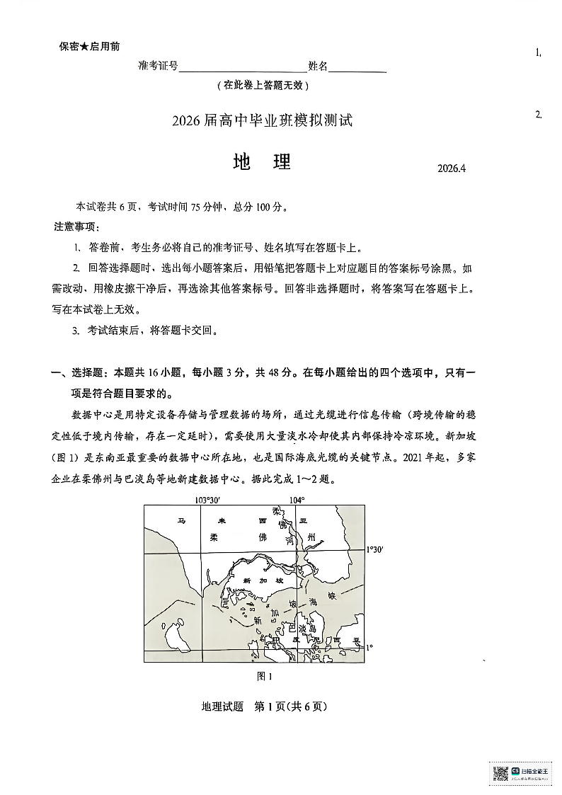 厦门市2026届高中毕业班模拟测试 地理.pdf