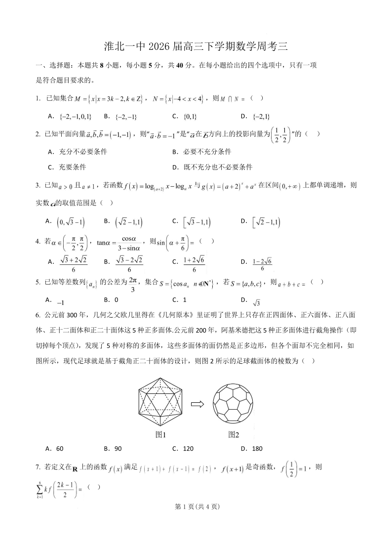 安徽省淮北市第一中学2026届高三下学期周考(三)数学试题(含答案).pdf