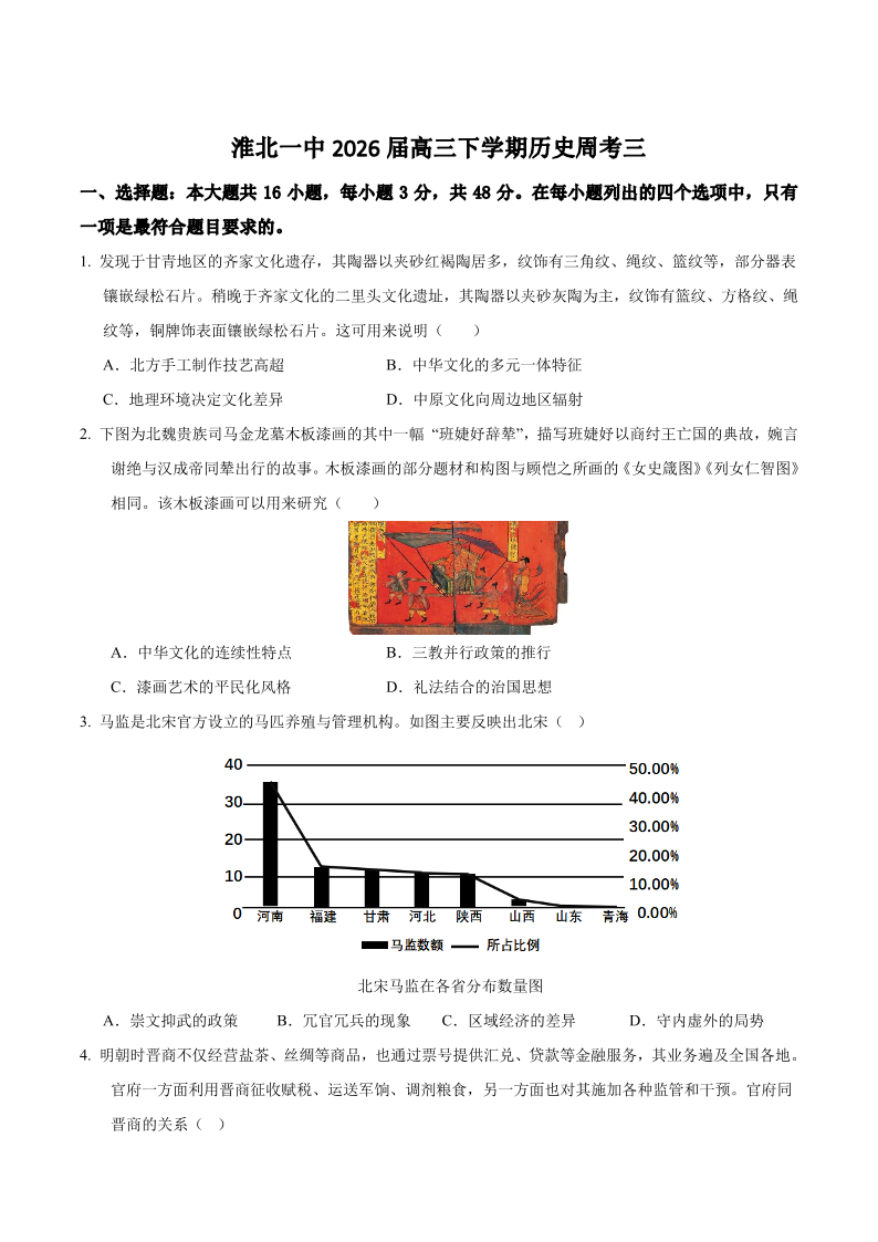 安徽省淮北市第一中学2026届高三下学期周考(三)历史试题(含答案).pdf