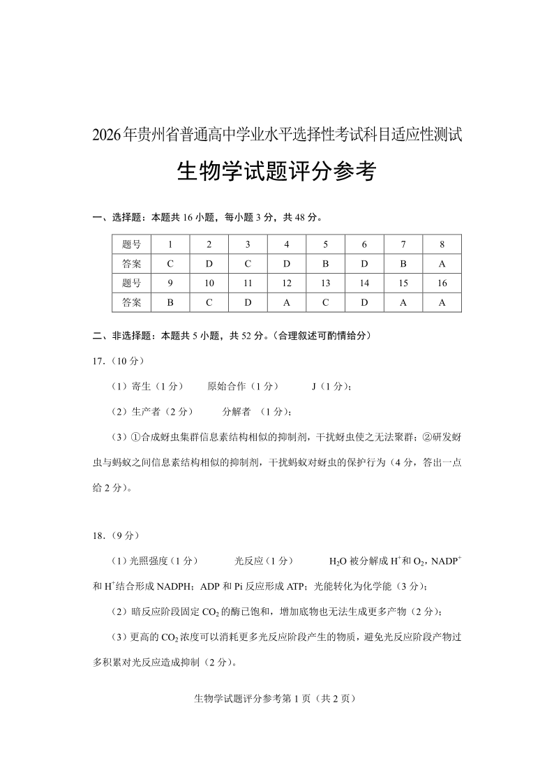 2026年贵州省普通高中学业水平选择性考试科目适应性测试 生物答案.pdf
