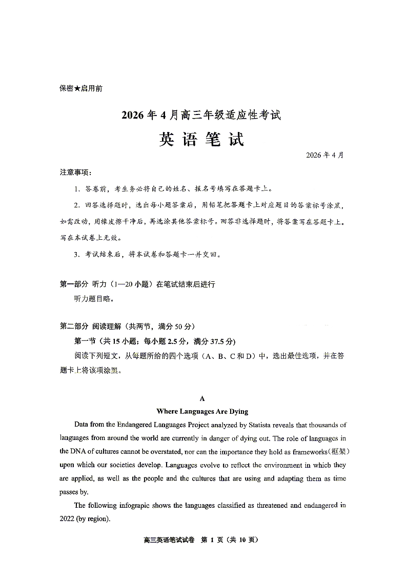 贵阳市2026年4月高三年级适应性考试 英语.pdf