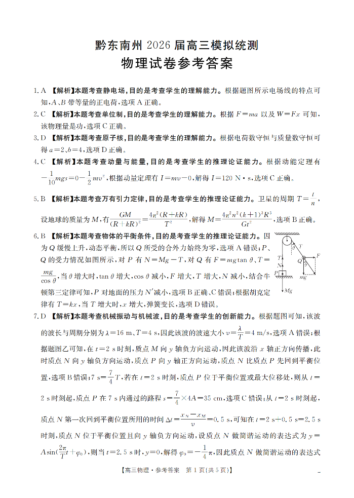 贵州省黔东南州2026届高三下学期模拟统测 物理答案.pdf