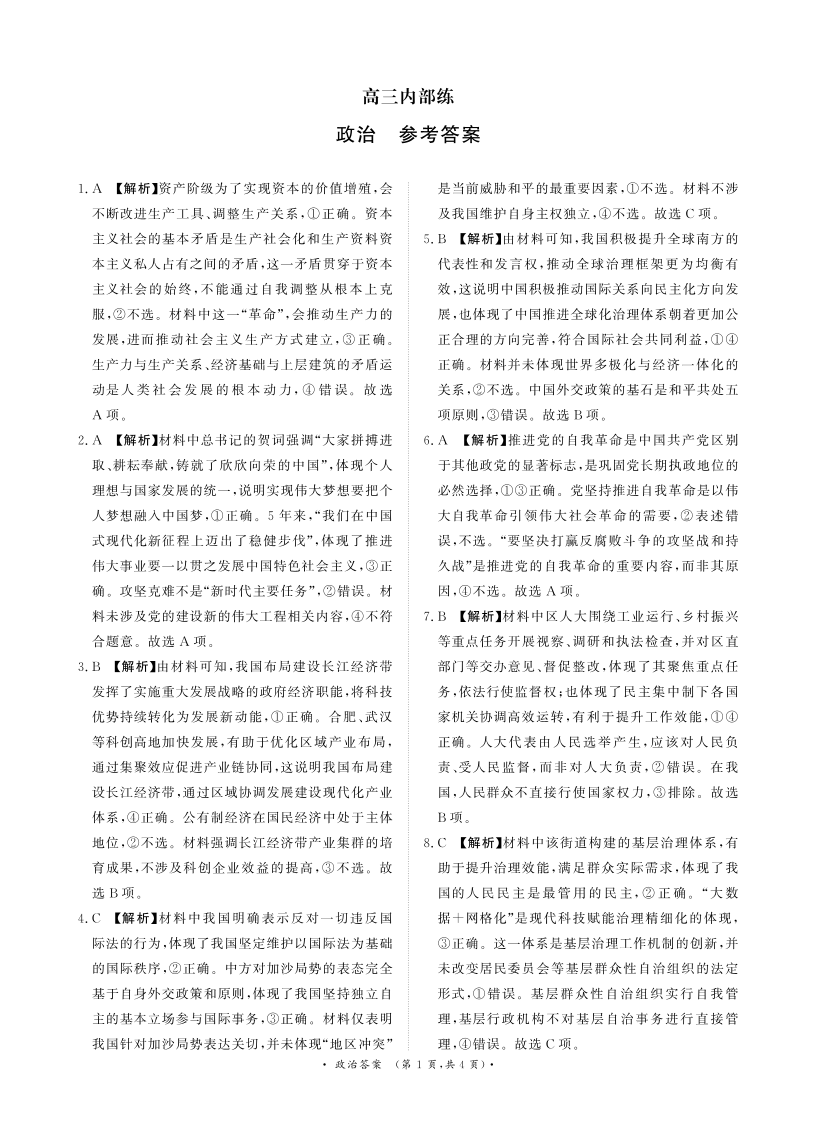 青桐鸣2026届高三下学期4月内部练 政治答案.pdf