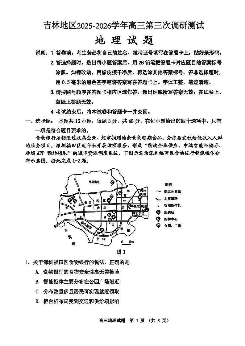 吉林地区普通中学2025-2026学年度高中毕业年级第三次调研测试 地理试题(含答案).pdf