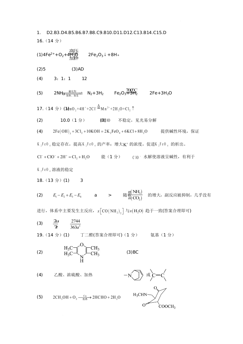 渤海大学附属高级中学2026届高三下学期第二次模拟预测 化学答案.docx
