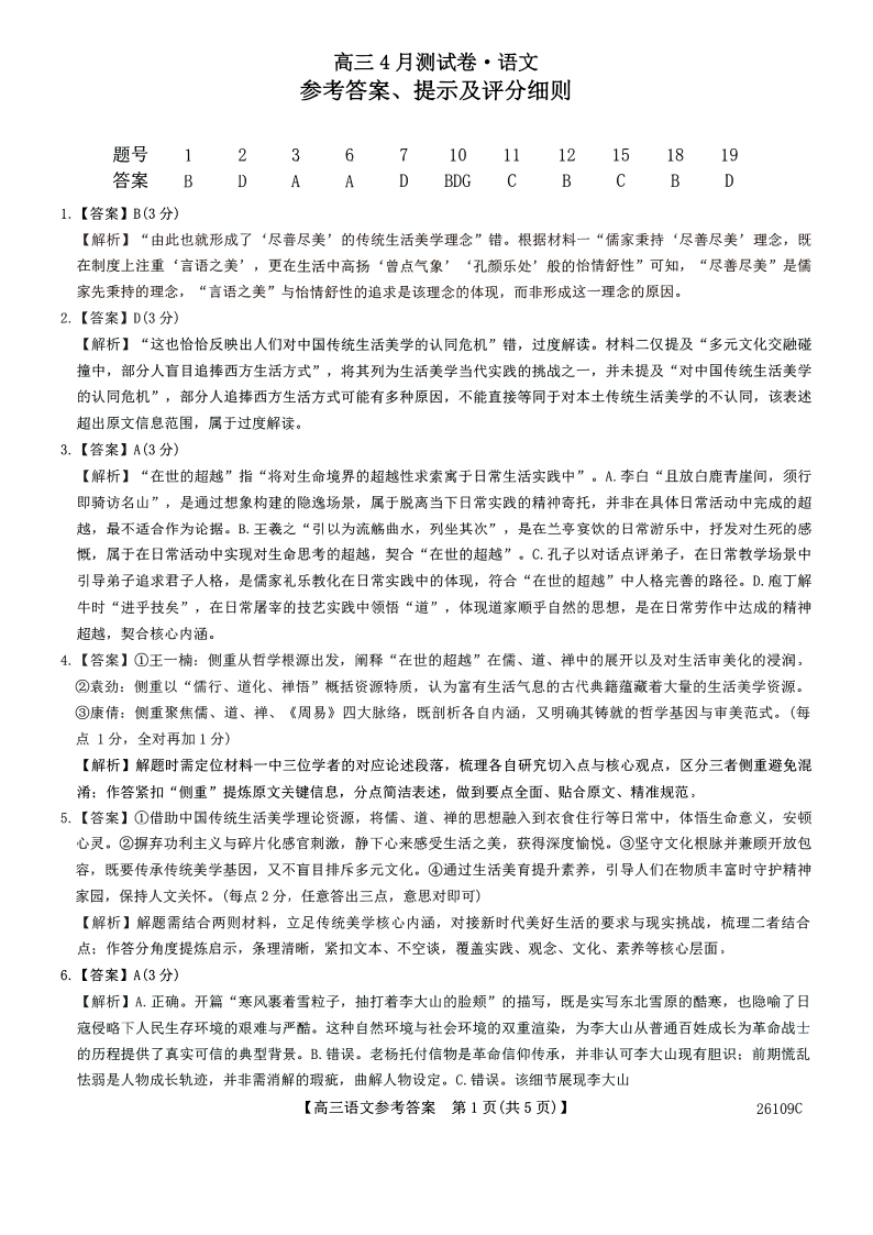 辽宁省县级重点高中协作体2026届高三年级4月测试卷 语文答案.pdf
