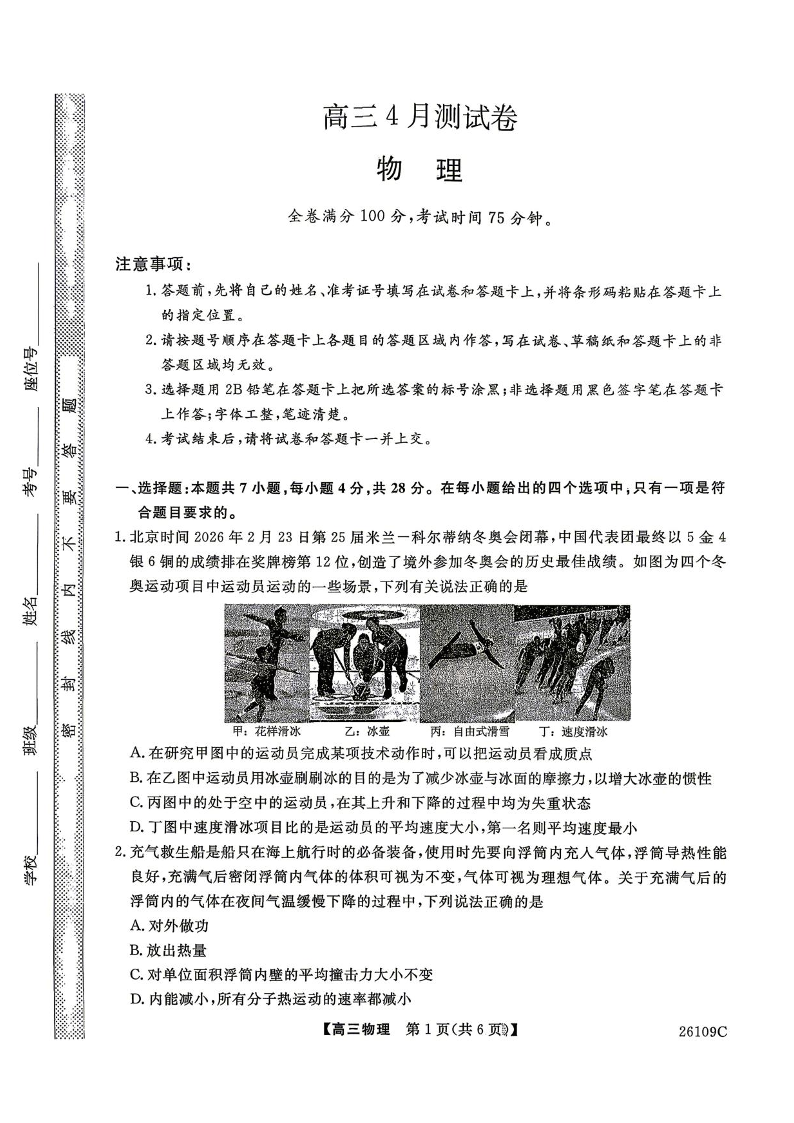 辽宁省县级重点高中协作体2026届高三年级4月测试卷 物理.pdf