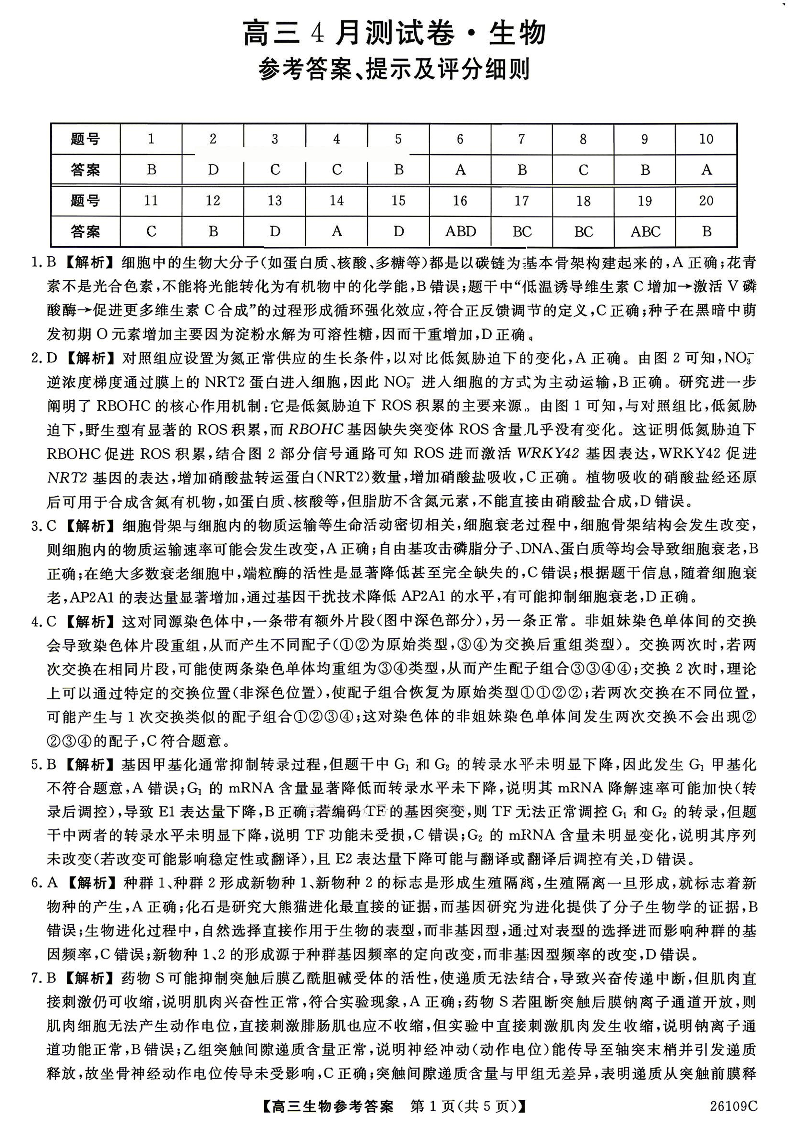 辽宁省县级重点高中协作体2026届高三年级4月测试卷 生物答案.pdf
