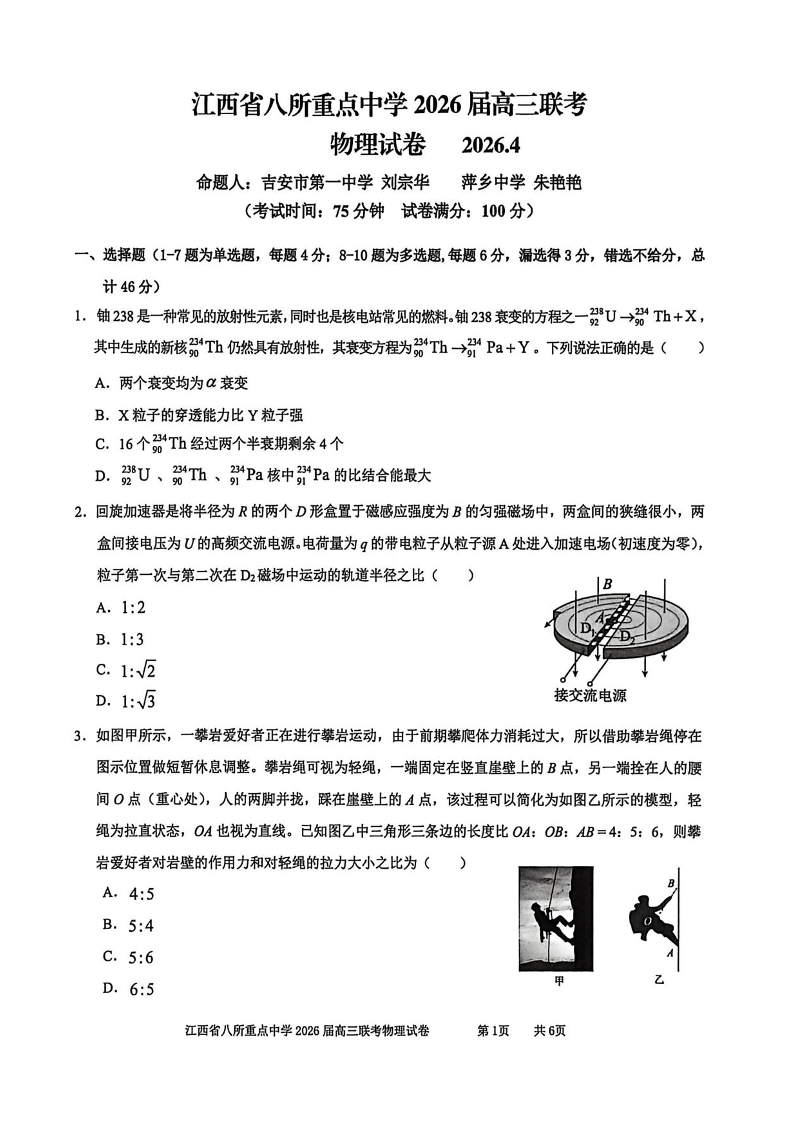 江西省八所重点中学2026届高三年级4月联考 物理.pdf