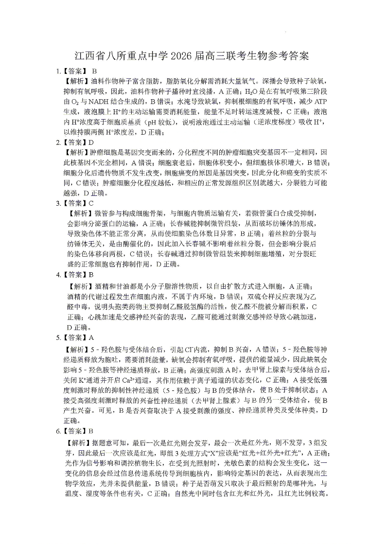 江西省八所重点中学2026届高三年级4月联考 生物答案.pdf