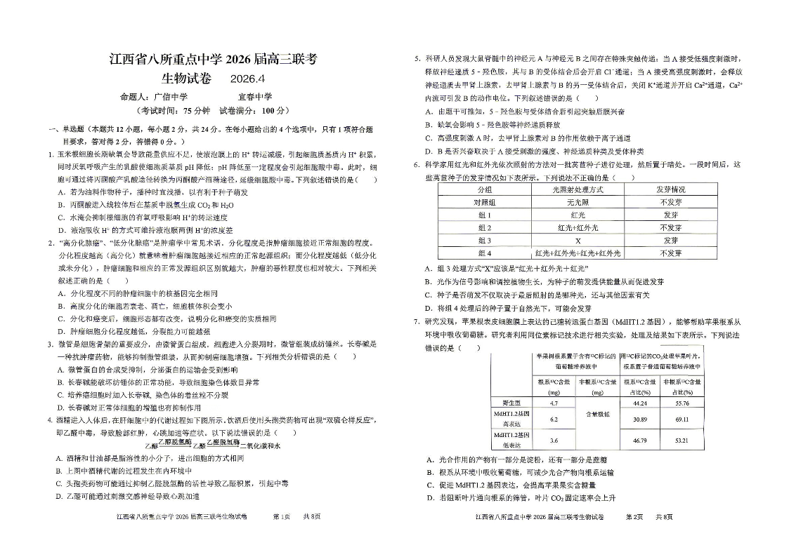 江西省八所重点中学2026届高三年级4月联考 生物.pdf