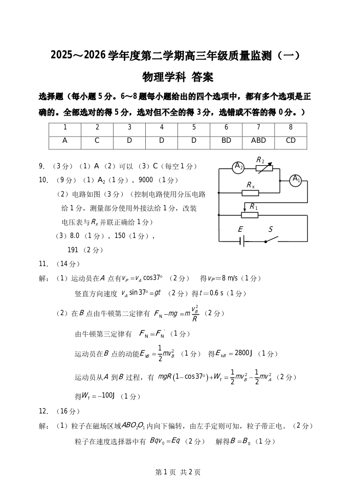 南开区2026高三一模 物理答案.pdf