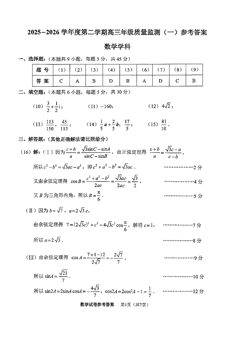 南开区2026高三一模 数学答案.pdf