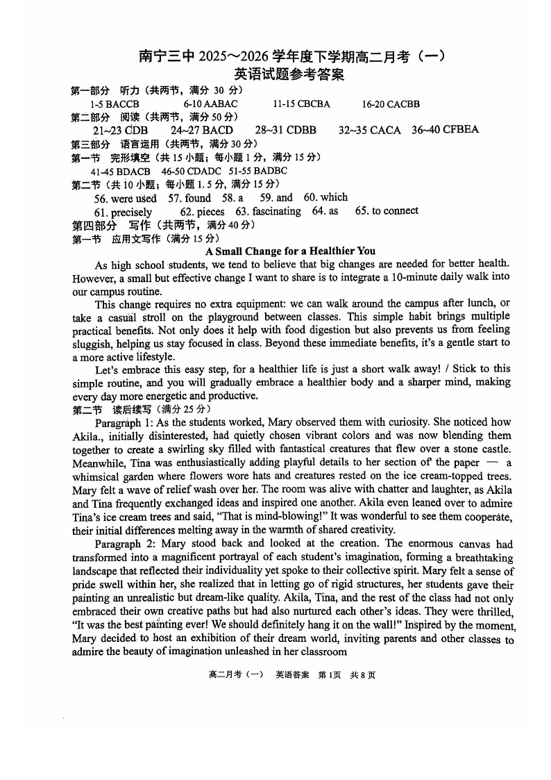 南宁三中2025-2026学年度下学期高二年级月考(一)英语答案.pdf