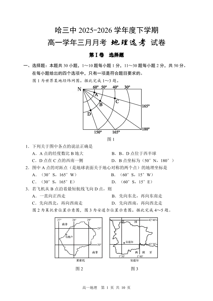 哈尔滨市第三中学2025-2026学年度下学期高一学年三月月考 地理.pdf