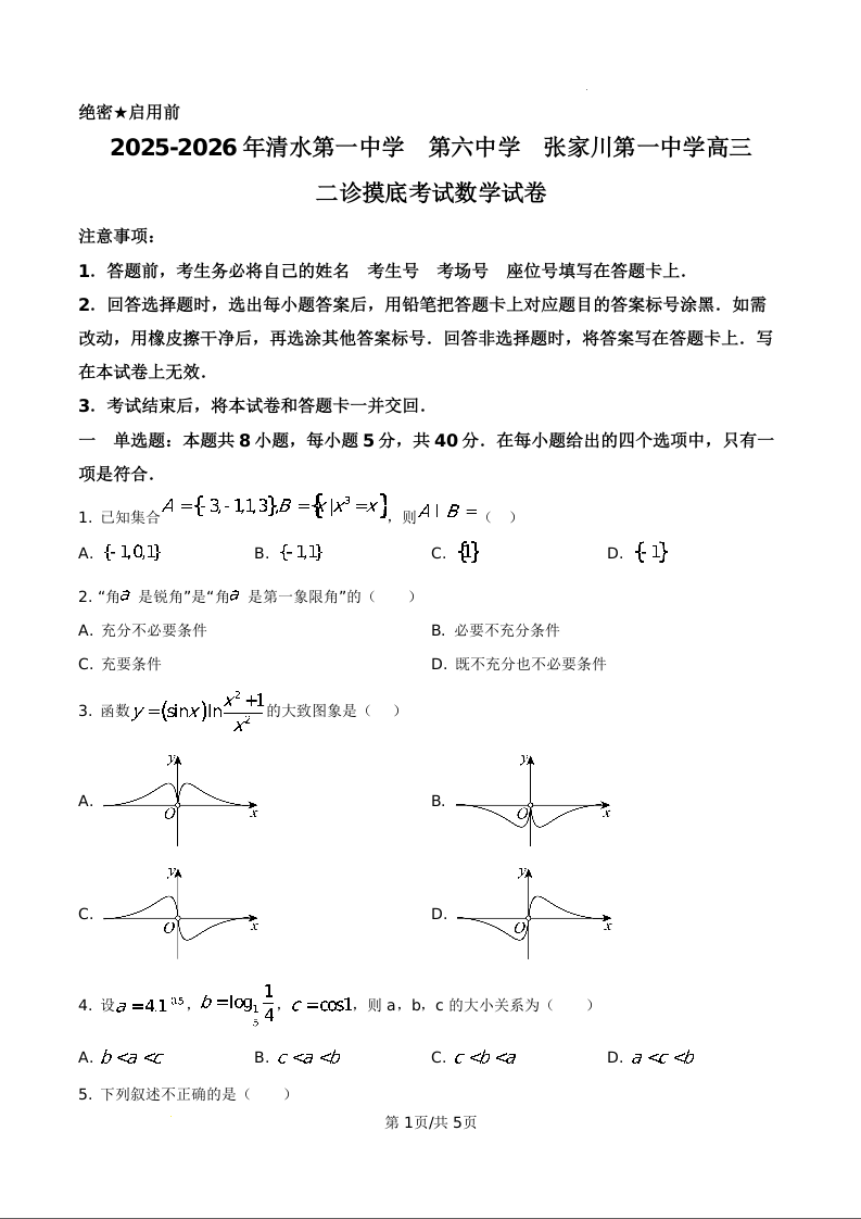 甘肃省天水市清水四校2026届高三下学期二诊模拟预测 数学.docx