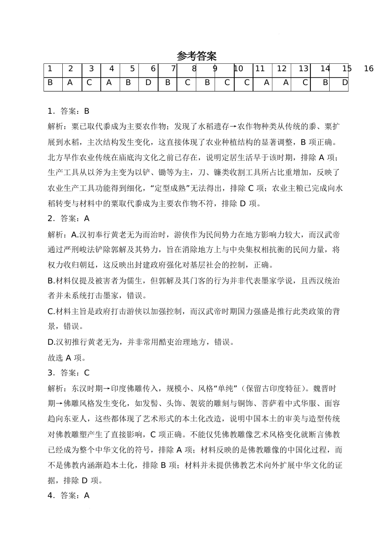 甘肃省天水市清水四校2026届高三下学期二诊模拟预测 历史答案.docx