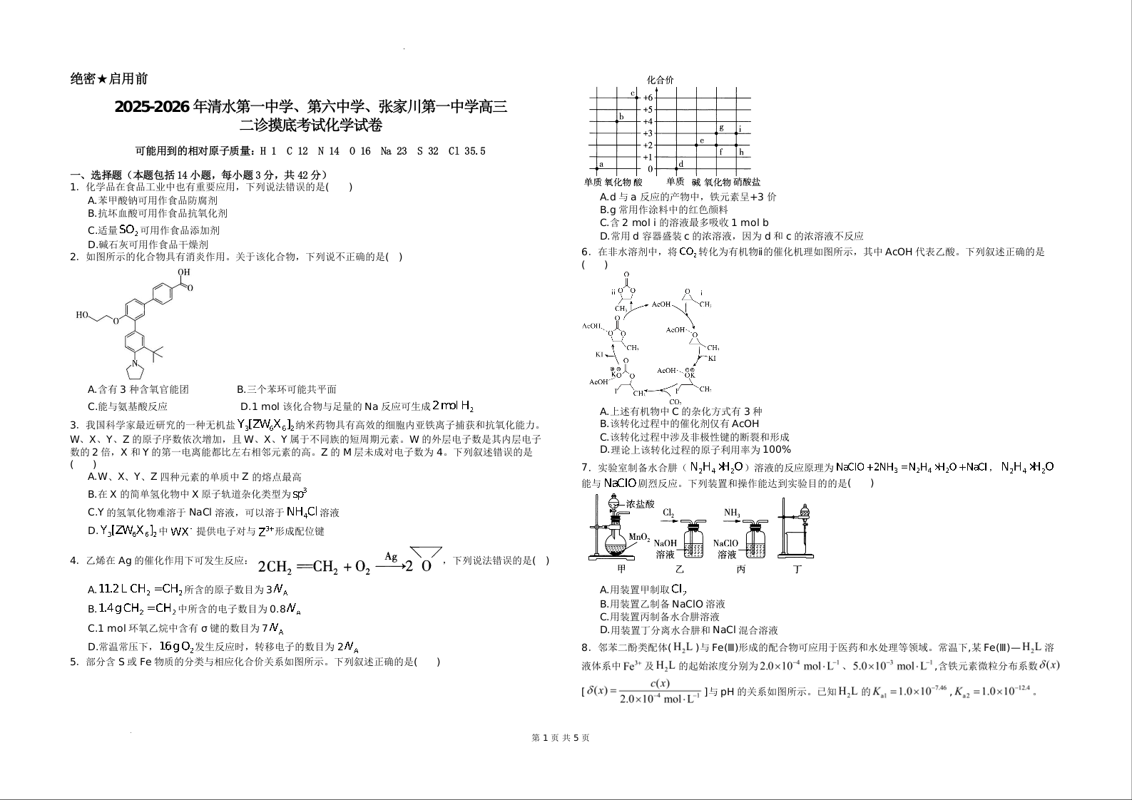甘肃省天水市清水四校2026届高三下学期二诊模拟预测 化学.docx