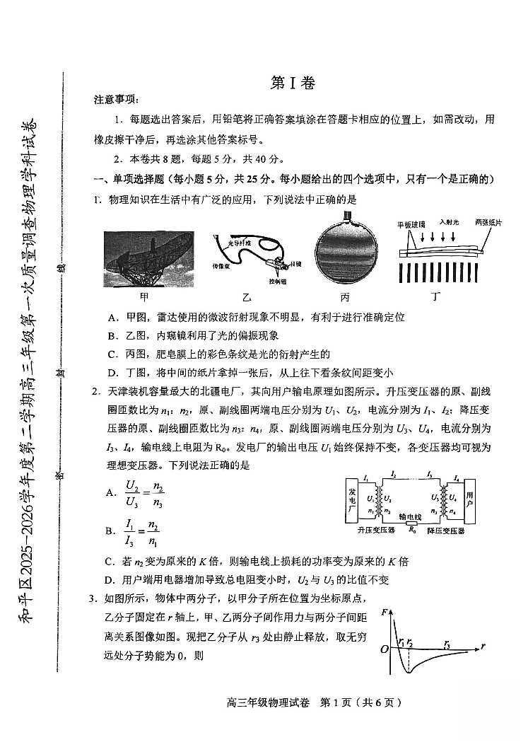 和平区2025-2026学年度高三年级第一次质量检测 物理.pdf