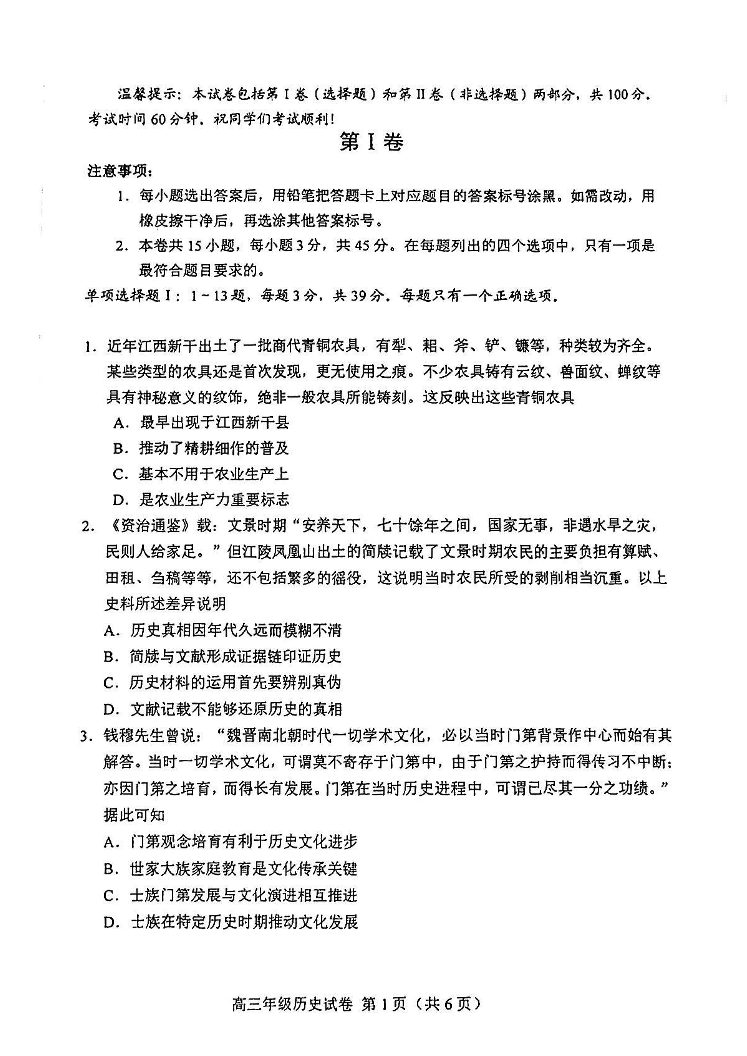和平区2025-2026学年度高三年级第一次质量检测 历史.pdf
