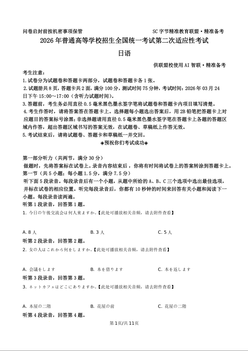 四川省字节精准教育联盟2026届高三下学期第二次适应性考试 日语.docx