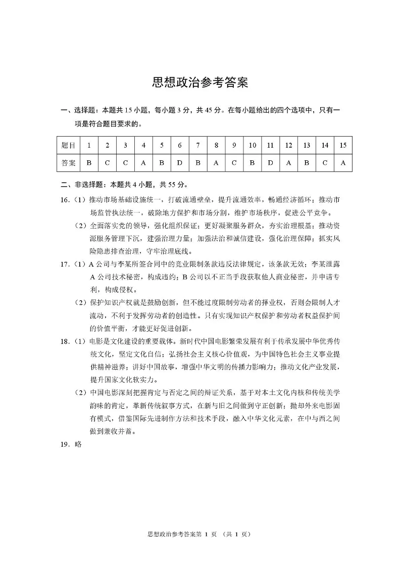 河南省2026届高三下学期高考适应性考试 政治答案.pdf