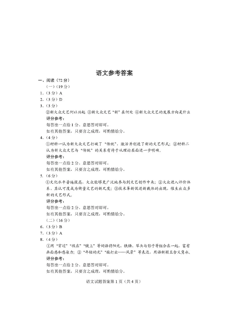 河南省2026届高三下学期高考适应性考试 语文答案.pdf