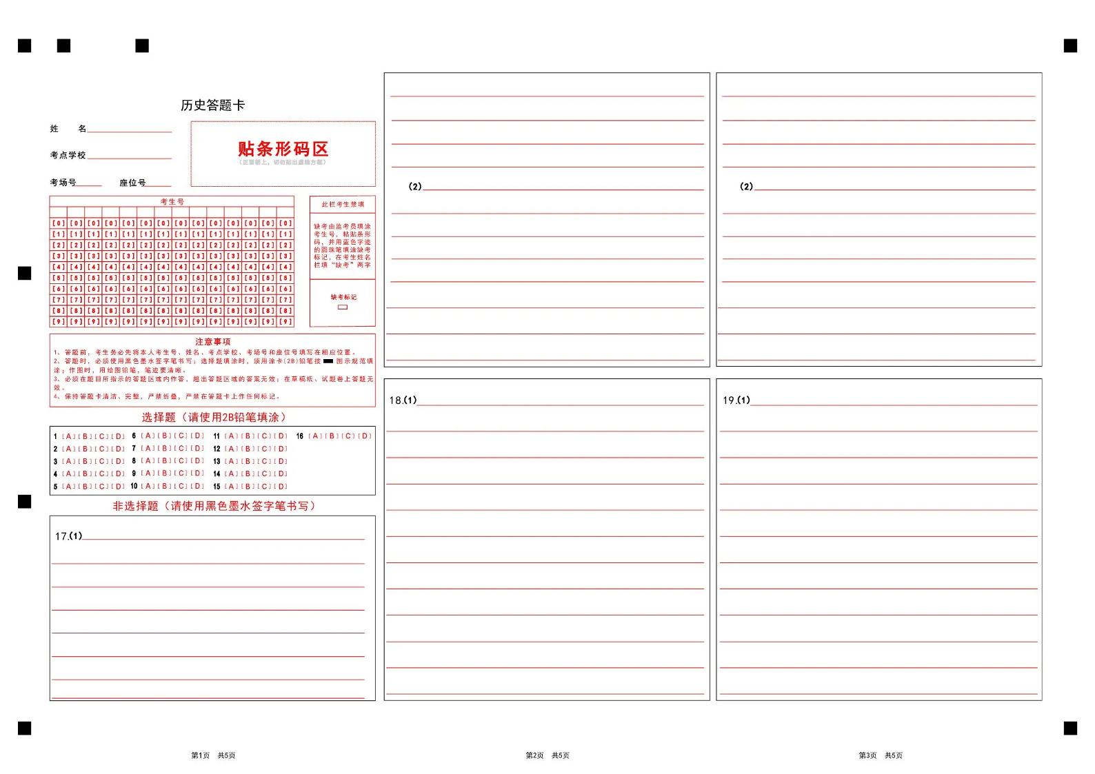 河南省2026届高三下学期高考适应性考试 历史答题卡.pdf