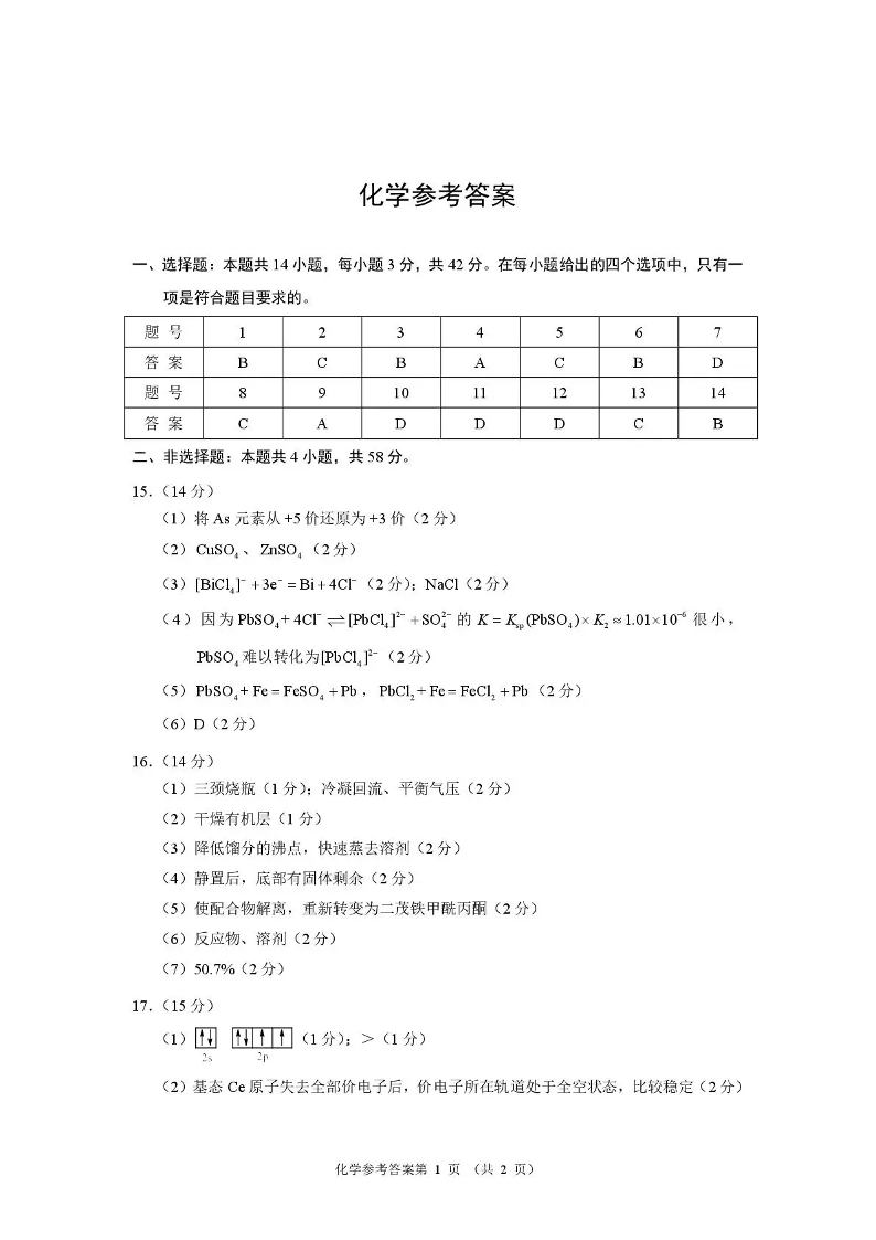 河南省2026届高三下学期高考适应性考试 化学答案.pdf