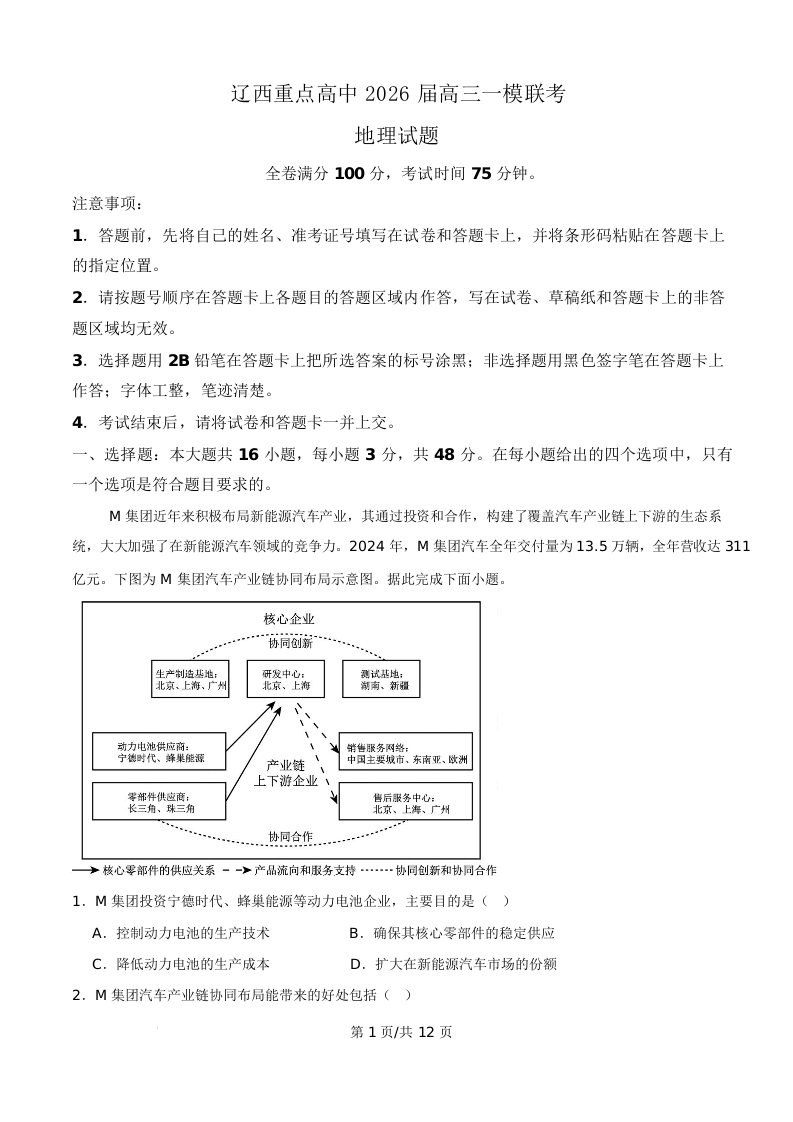 辽西重点高中2026届高三一模联考 地理答案.docx