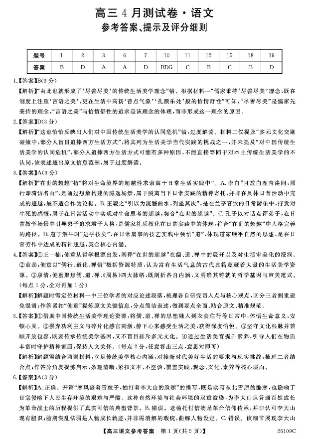 辽宁省县级重点高中协作体2026届高三下学期4月测试 语文答案.pdf