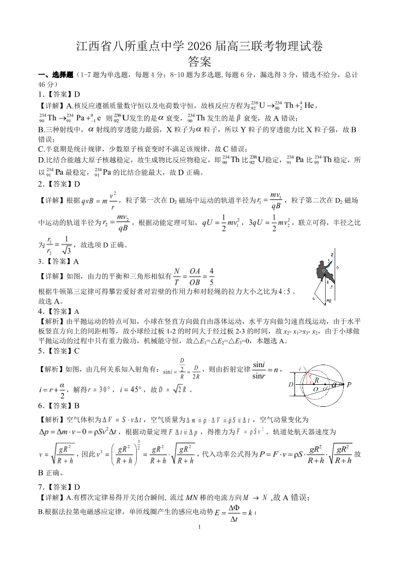 江西省八所重点中学2026届高三联考 物理答案.pdf