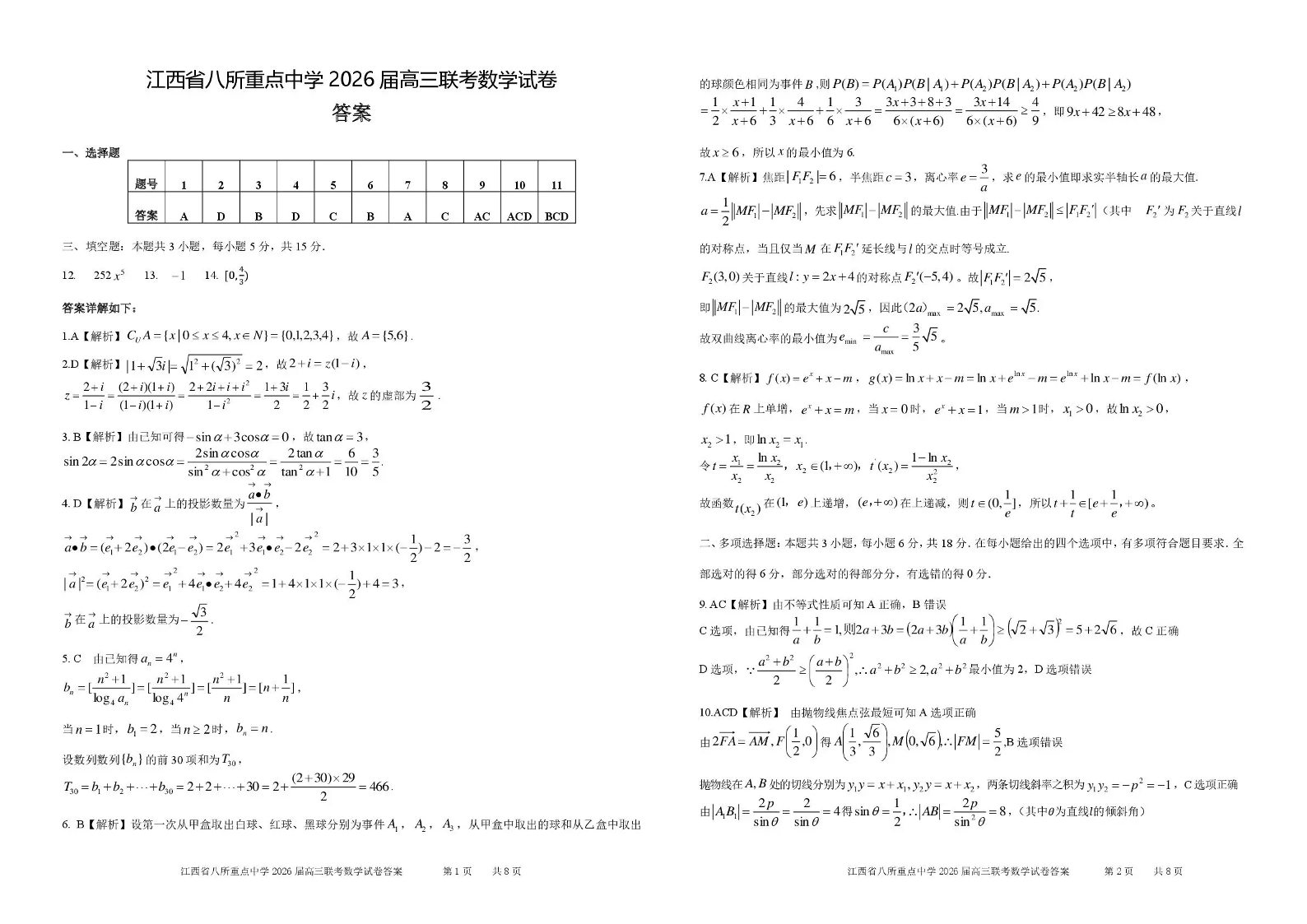 江西省八所重点中学2026届高三联考 数学答案.pdf