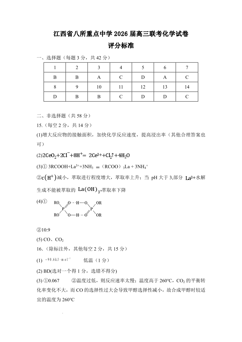 江西省八所重点中学2026届高三联考 化学答案.pdf