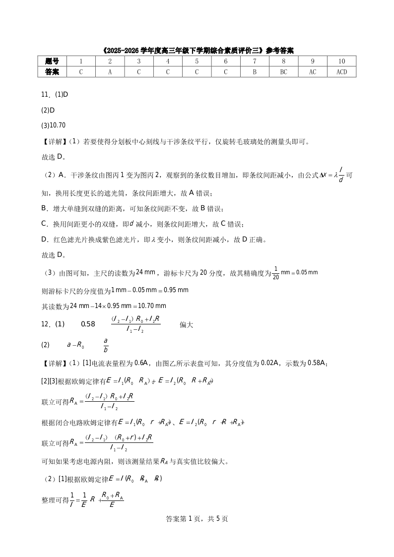 河北省衡水中学2025-2026学年高三年级下学期综合素质评价三 物理答案.pdf