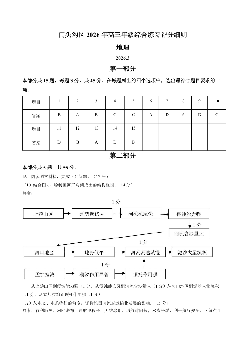 北京市门头沟区2026年高三下学期综合练习 地理答案.docx