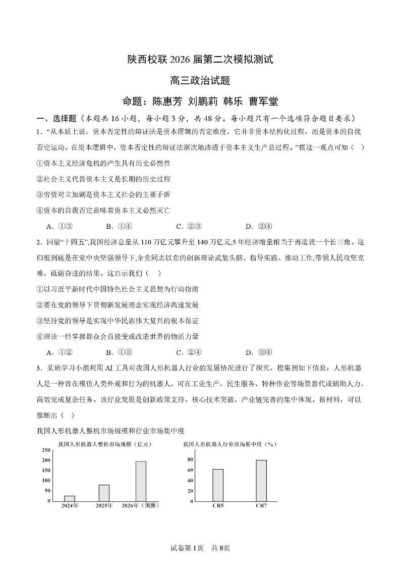 陕西省校联(西安市,渭南市,榆林市)2026届高三第二次模拟测试 政治.pdf