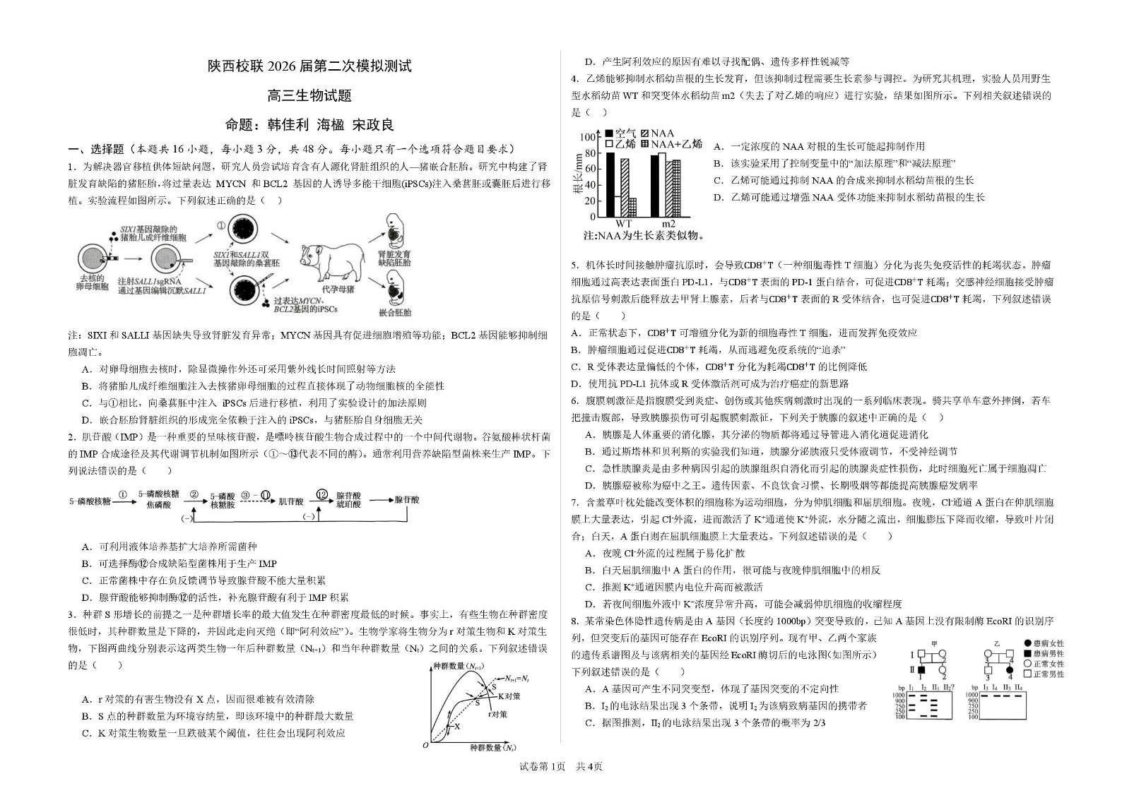 陕西省校联(西安市,渭南市,榆林市)2026届高三第二次模拟测试 生物.pdf
