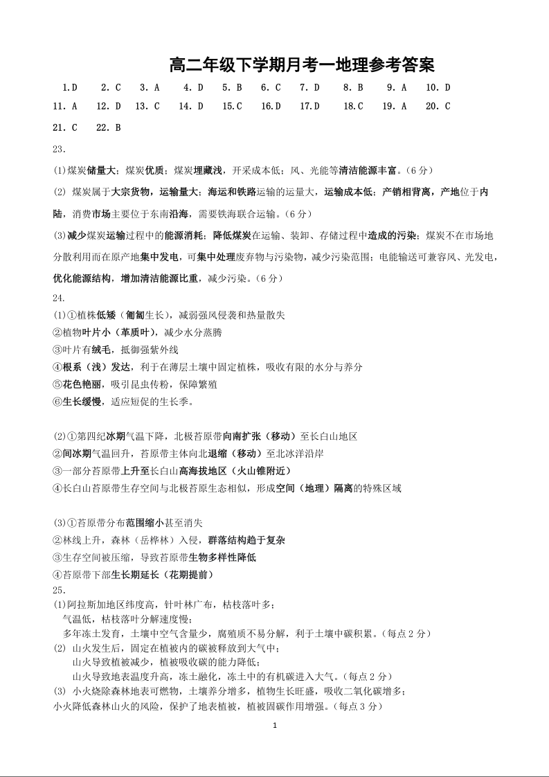 玉溪一中2025-2026学年下学期高二年级月考一 地理答案.docx
