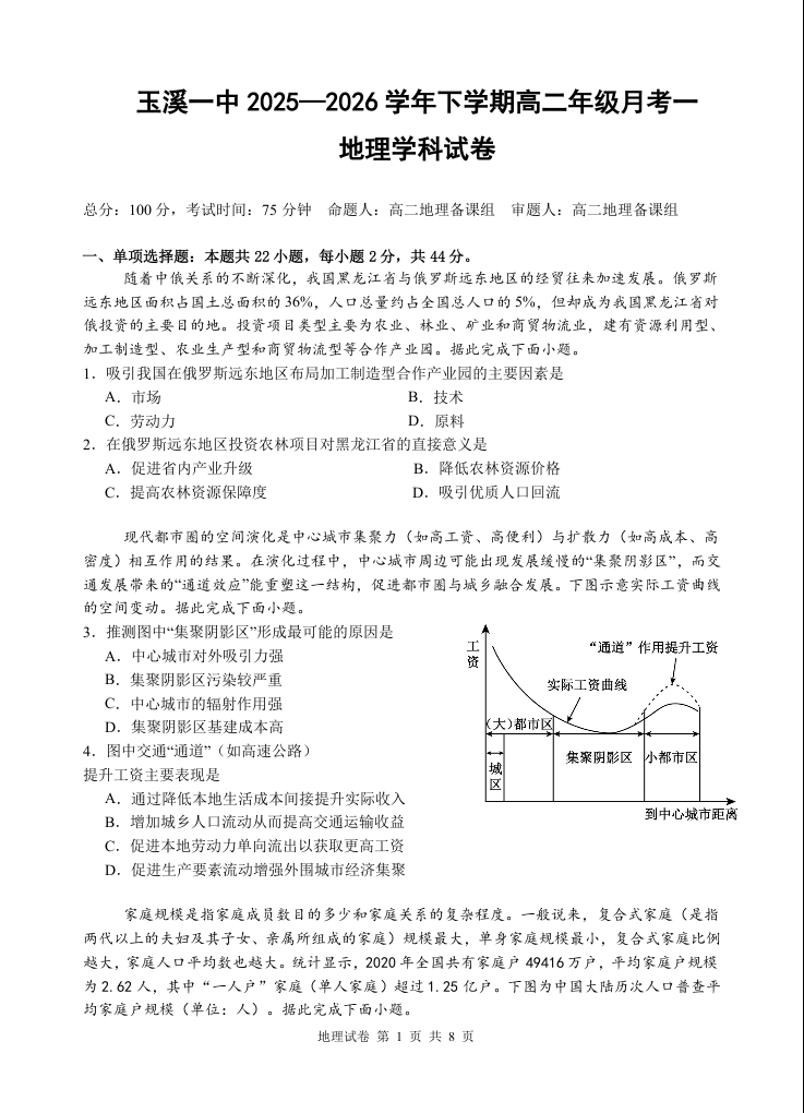 玉溪一中2025-2026学年下学期高二年级月考一 地理.docx