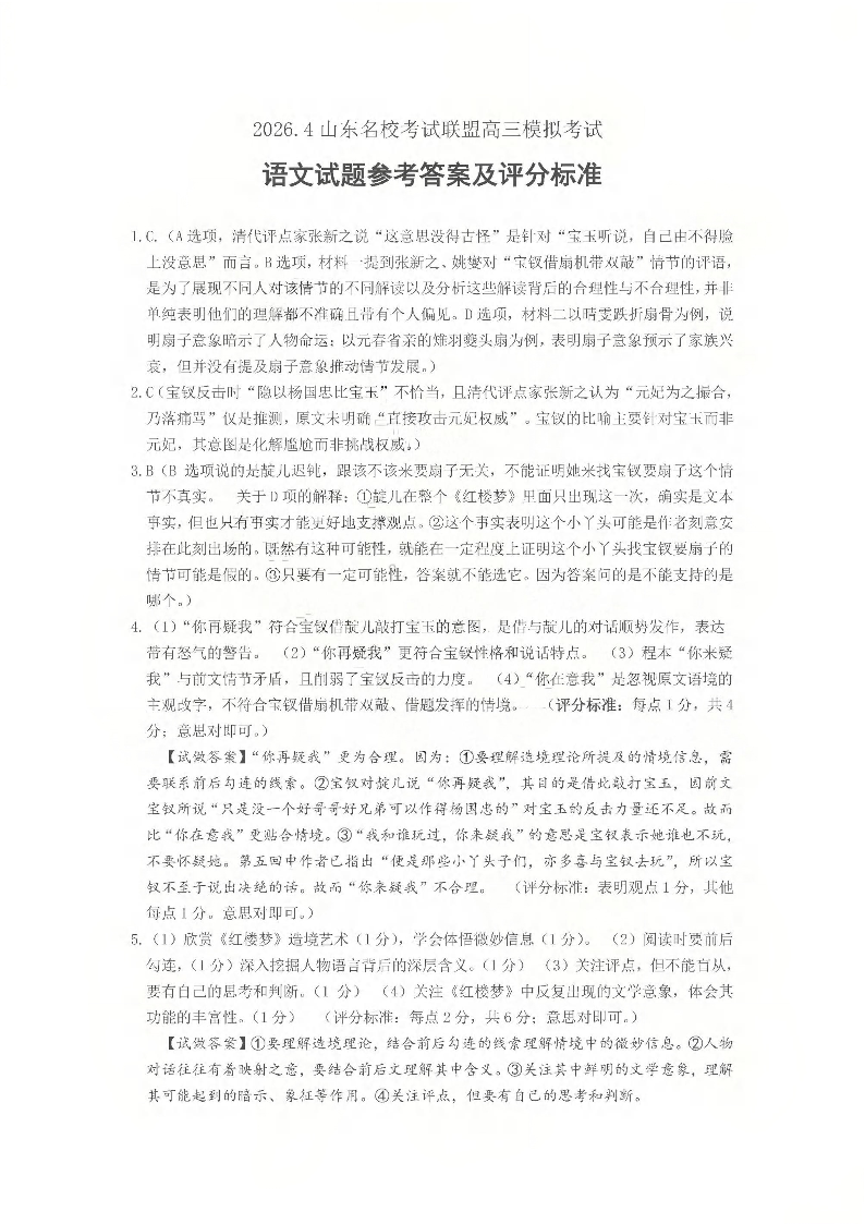 山东省名校考试联盟2026年4月高三核心素养评估 语文答案.pdf