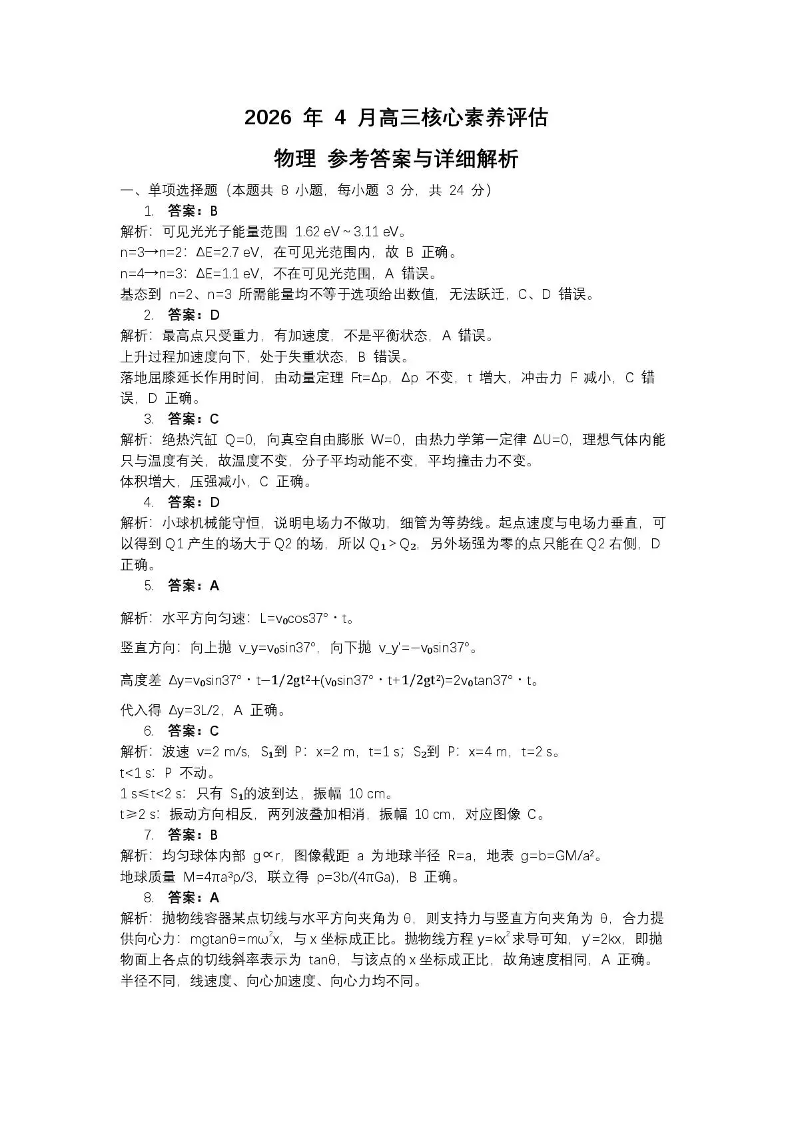 山东省名校考试联盟2026年4月高三核心素养评估 物理答案.pdf